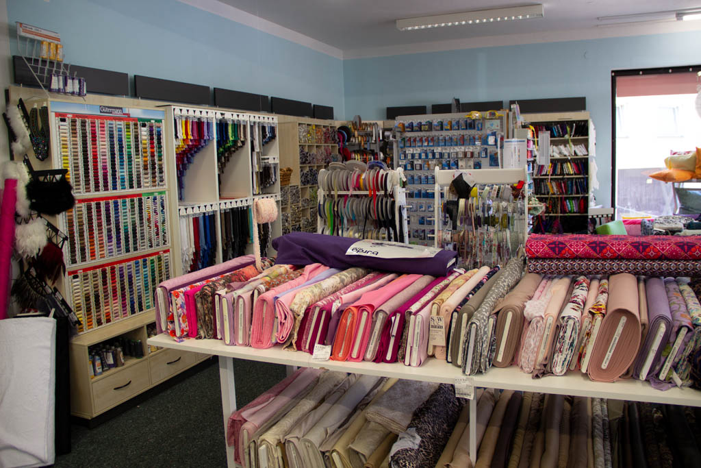 Um das Angebot abzurunden führen wir auch unzählig viele Artikel wie Nähfaden, Nadeln, Knöpfe, Reißverschlüsse, Patches, Borten und Schrägbänder. Handarbeitszubehör wie Strick- oder Häkelnadeln sowie eine Wolleauswahl steht auch zur Verfügung.