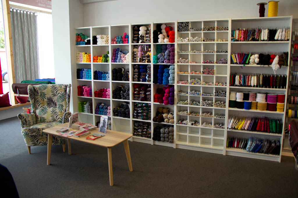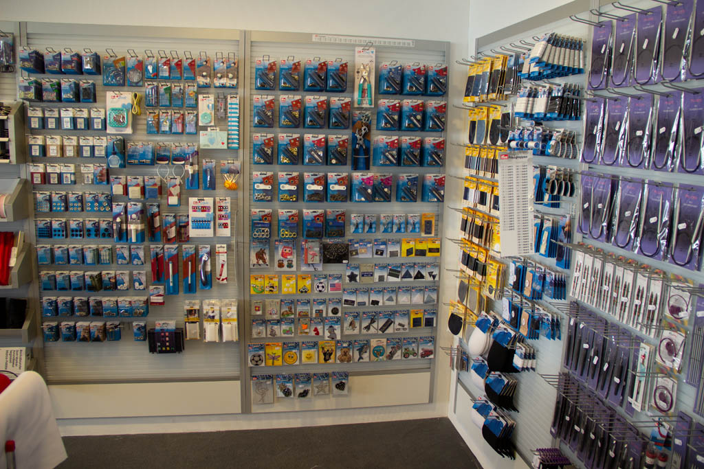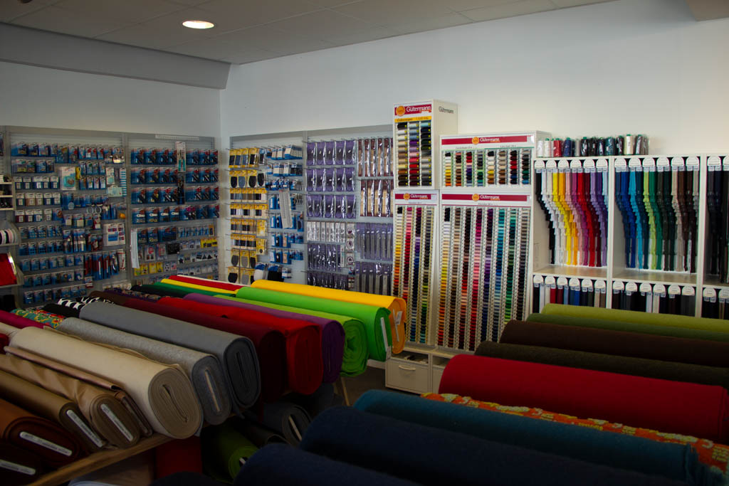 Um das Angebot abzurunden führen wir auch unzählig viele Artikel wie Nähfaden, Nadeln, Knöpfe, Reißverschlüsse, Patches, Borten und Schrägbänder. Handarbeitszubehör wie Strick- oder Häkelnadeln sowie eine Wolleauswahl steht auch zur Verfügung.